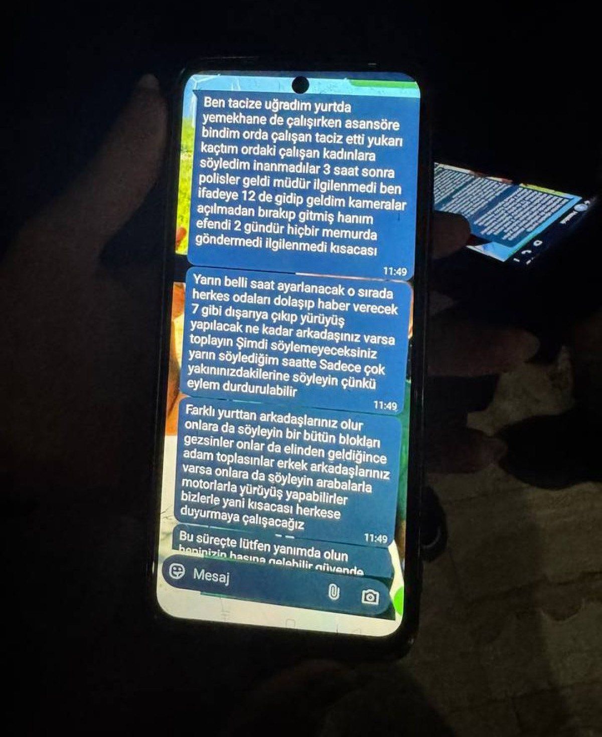 Olayın ardından öğrenci İ.Ö. bağırarak duruma tepki gösterdi; şüpheli M.K. ise “Bilerek yapmadım, sadece elim değdi” diyerek kendini savundu. Bu olay üzerine kız öğrenci yurttan ayrıldı.