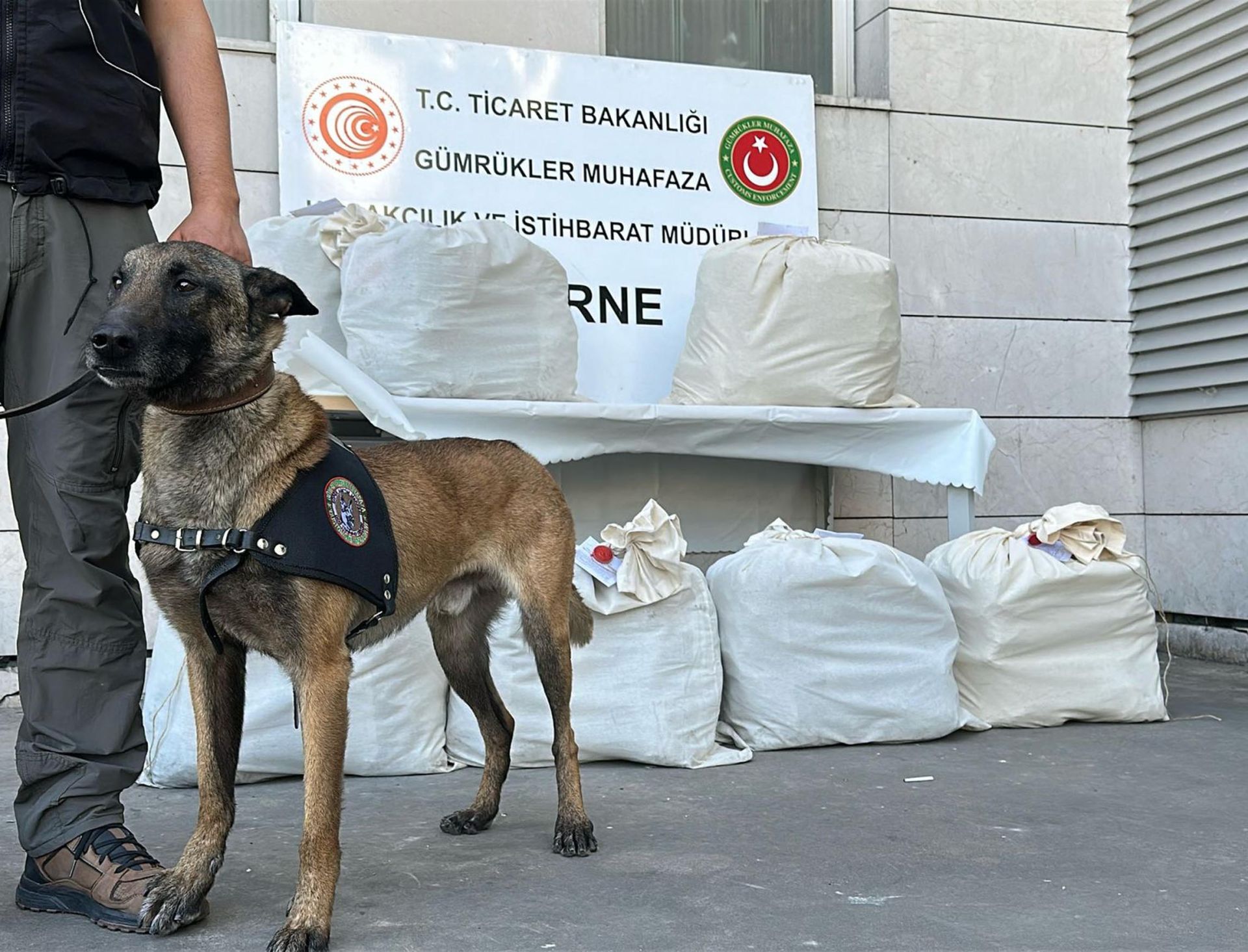 Edirne’de Bulgaristan’a açılan Kapıkule Sınır Kapısı’ndan yurda giriş yapan yolcu otobüsünde narkotik köpek Jeff ile yapılan aramada, gizli bölmede 87 kilo esrar ele geçirildi, 3 kişi tutuklandı.