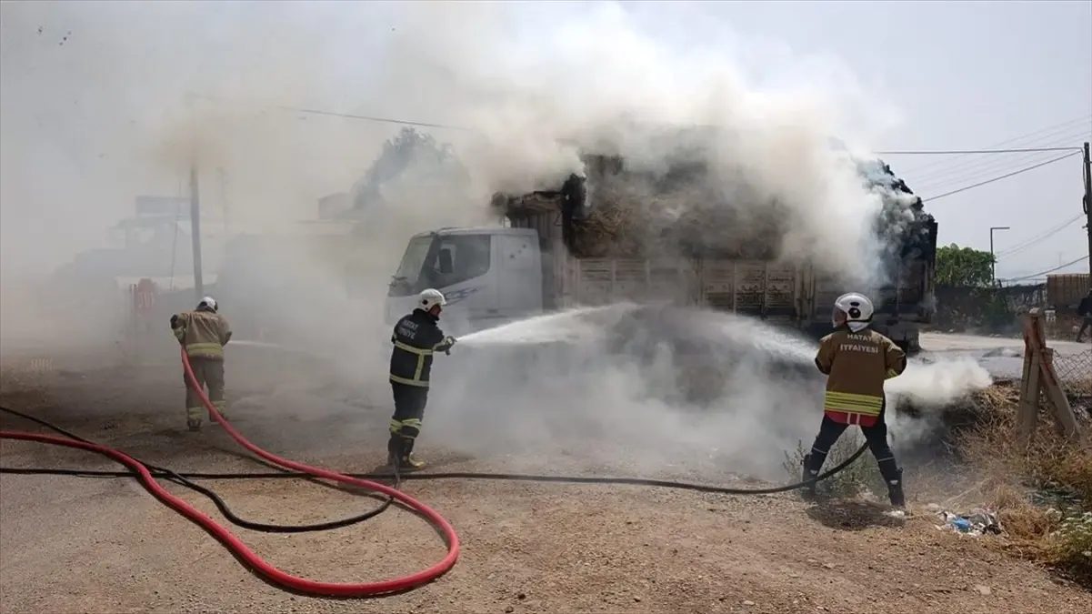 Hatay'ın Kırıkhan ilçesinde saman yüklü bir tırda çıkan yangın itfaiye tarafından söndürüldü.