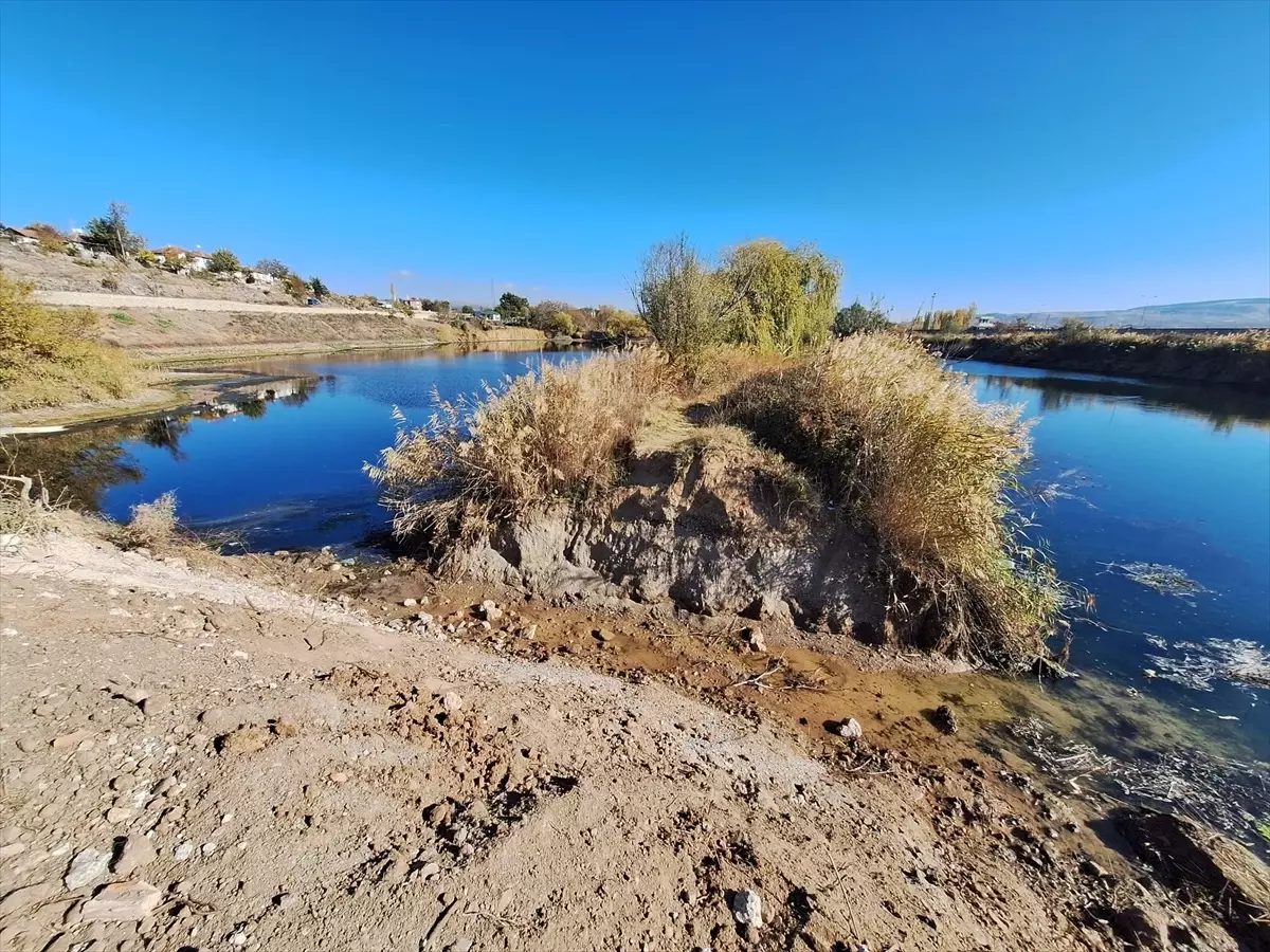 Bölgeye gelen DSİ’ye ait iş makineleri, göletin su giriş çıkış sirkülasyonunu sağlamak amacıyla ikinci bir ark oluşturdu.