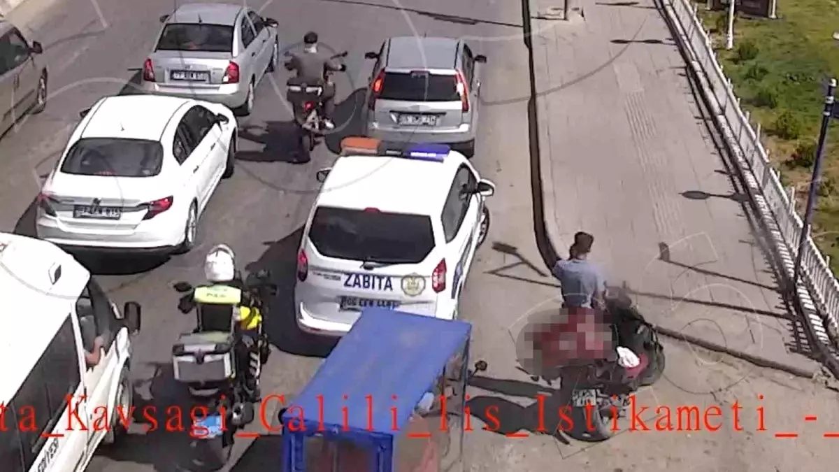 Aynı kavşakta kırmızı ışıkta bekleyen bir motosikletli kurye ise ilginç görüntülerle kameralara takıldı. Polisi fark eden sürücü, motosikletten inip bir süre bekledikten sonra sepetinden çıkardığı kaskı taktı ve ardından yönünü değiştirerek uzaklaştı. Daha sonra kuryeye kask kullanmamaktan 993 lira para cezası uygulandı.