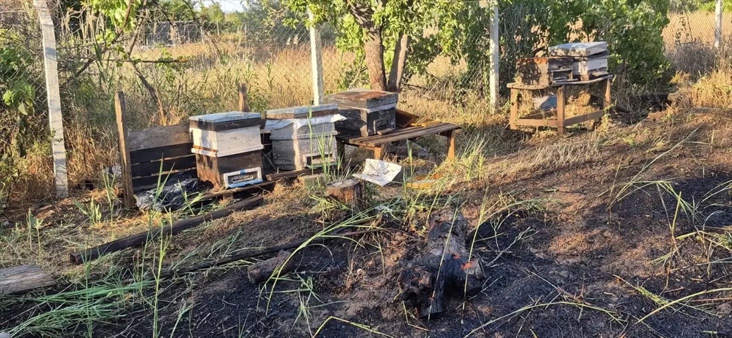 Ekiplerin kısa sürede bahçedeki eve sıçramadan söndürdüğü yangında, bazı ağaçlar zarar gördü.