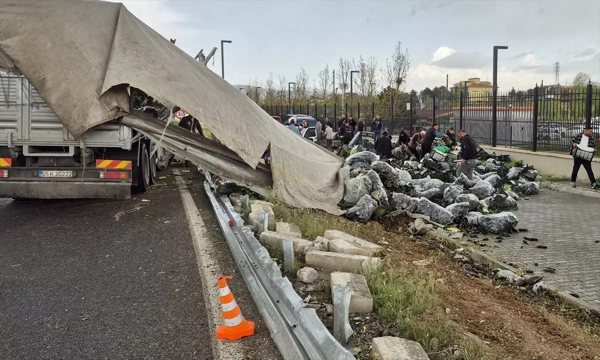 Alınan bilgiye göre, A.C. yönetimindeki 55 K 20222 plakalı tır, Hüseyin Onbaşı Mahallesi’nde devrildi. Kazada tırın dorsesinde bulunan sebzeler yola döküldü.