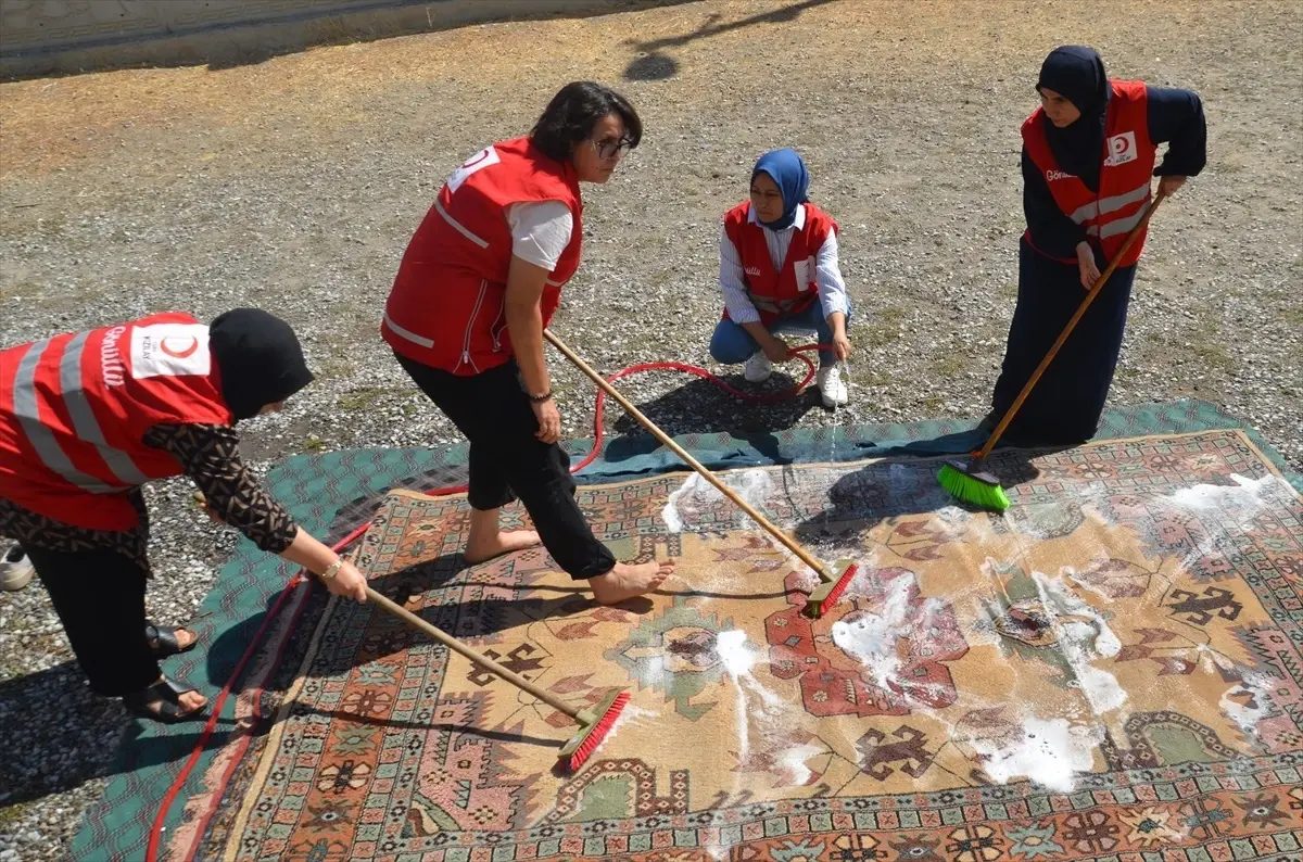 Türk Kızılay Muş Şubesi gönüllüleri, gittikleri köy okulunun duvarlarını boyayıp resimlerle süsledi, halılarını yıkayıp temizliğini yaparak orayı yeni eğitim öğretim yılına hazır hale getirdi.