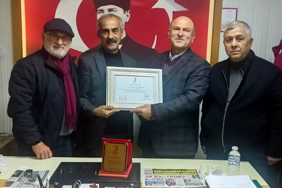 Türk Kızılay Ünye Şubesi, Ziraat Odası Başkanı Sarıkahraman'a destekleri için teşekkür plaketi verdi.