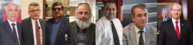 Soldan sağa sırasıyla: Osman Zorba, Tufan Erhürman, Arif Salih Kırdağ, Ahmet Boran, Mehmet Hasgüler, İbrahim Yazıcı, ve Ersin Tatar.BİR ADAY SAATLER KALA TATAR LEHİNE ÇEKİLDİ