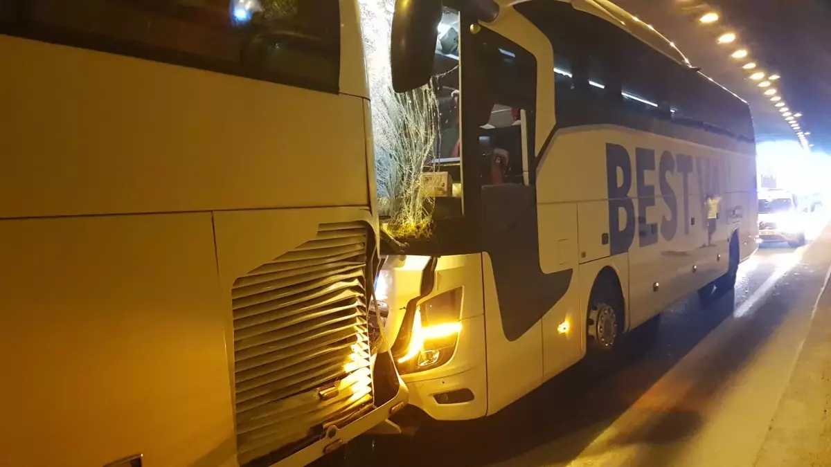 Kocaeli'de TEM Otoyolu'nde Korutepe Tüneli içinde bir TIR ile iki yolcu otobüsünün karıştığı kazada, 10 kişi yaralandı. Olay yerine sağlık ve jandarma ekipleri sevk edildi ve yaralılar hastaneye kaldırıldı.