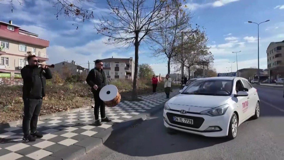Bedir’in arkadaşları, parkurun bitiş noktasında bekleyerek sınavı geçen kadını davul ve zurna ile karşıladı.