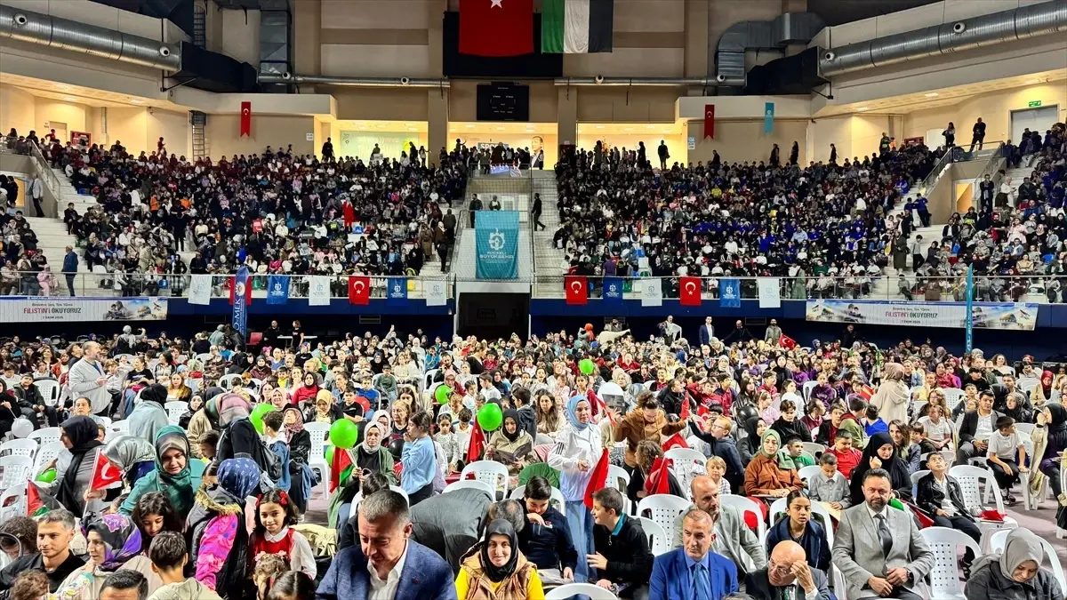 İstiklal Marşı’nın okunması ve İsrail’in saldırıları sonucu Filistin’de hayatını kaybedenler için dua edilmesinin ardından, 4 bin 500 ebeveyn aynı anda çocuklarına Merve Gülcemal’in kaleme aldığı “Filistin Bizim” isimli hikaye kitabını okudu.