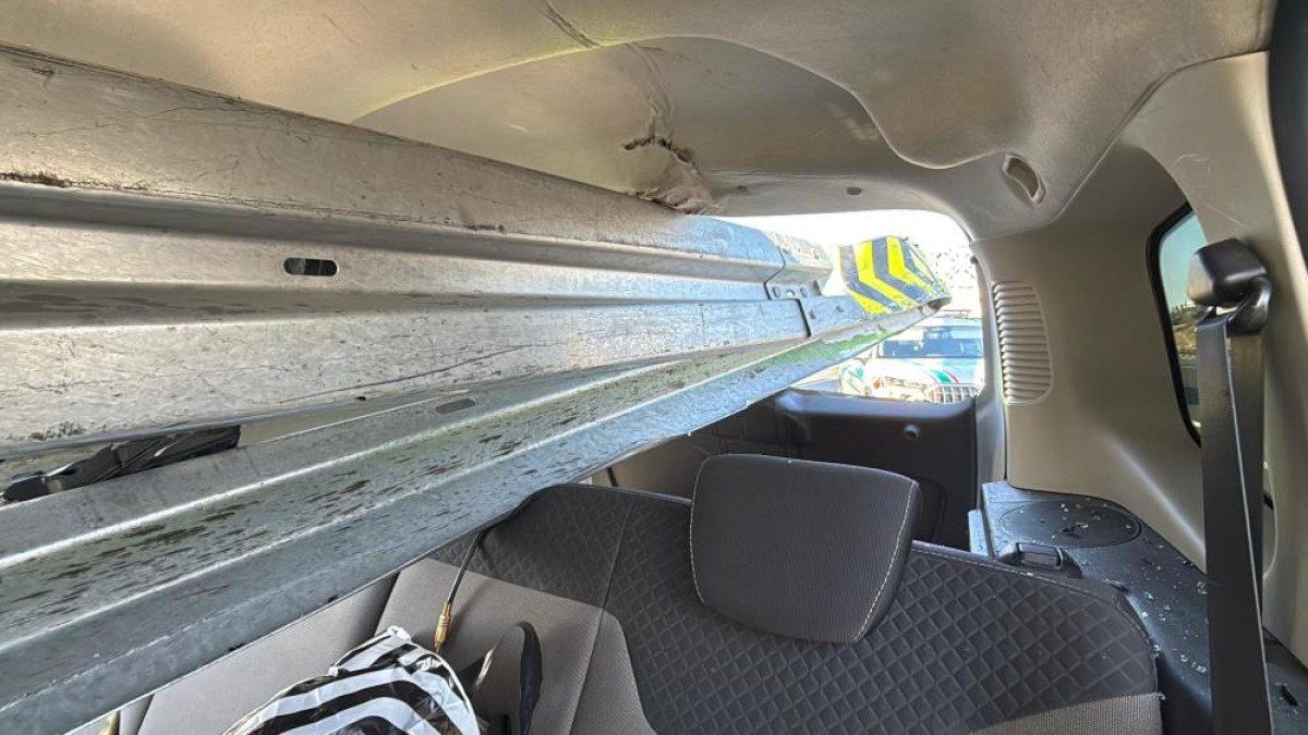Demir bariyerlerin aracın içini delerek geçtiği kazada sürücü yaralandı.
