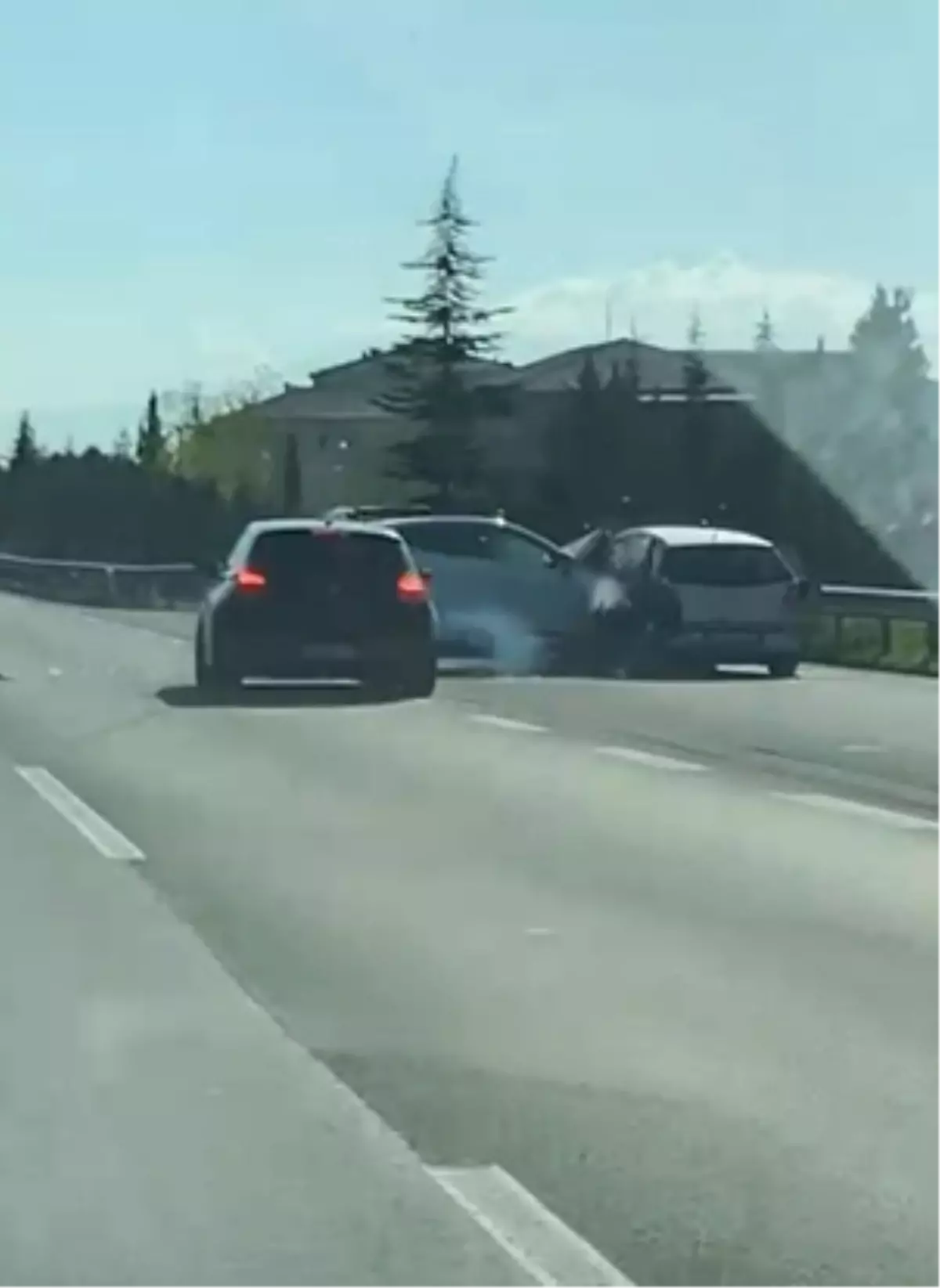 Ardacan UZUN/KOCAELİ,-KOCAELİ’de TEM Otoyolu’nda içerisinde bebek olan aracı sıkıştırıp, makas atan sürücünün kullandığı otomobil, aynı araca ve yanındaki otomobile çarptı. Olay, cep telefonu kamerasına yansıdı.
