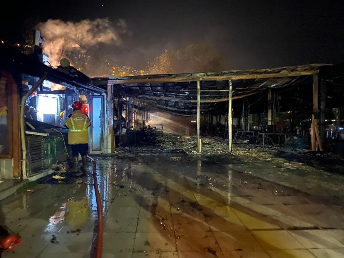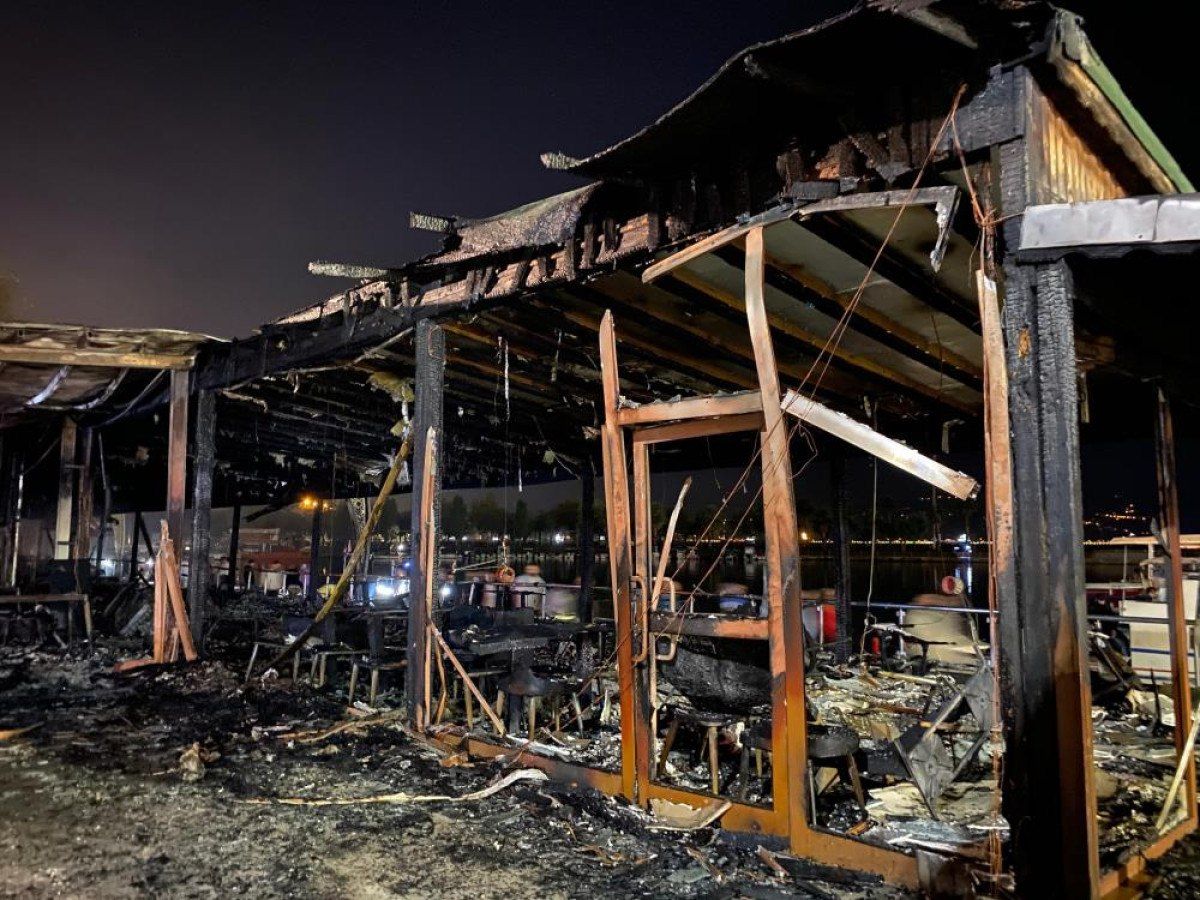 Deniz kenarında bulunan bir restoranın mutfak kısmından başladığı tahmin edilen yangın, yapının ahşap olması sebebiyle çok hızlı büyüdü. Alevler Körfez kıyısındaki bir çok noktadan görüldü. Olay yerine çok sayıda itfaiye, sağlık ve polis ekibi sevk edildi. Kıyıda demirli bulunan kayık ve tekne sahipleri de alevlerin sıçrama ihtimaline karşı panik yaşadı.
