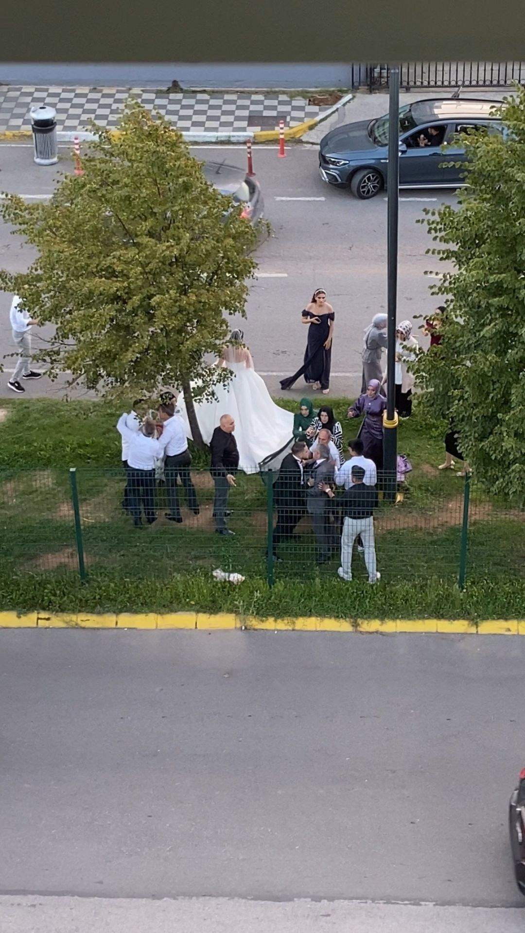 Vatandaşın cep telefonu kamerasına yansıyan görüntülerde, damadın tarafları sakinleştirmeye çalıştığı, gelinin ise gerginlik yaşadığı anlar yer aldı.