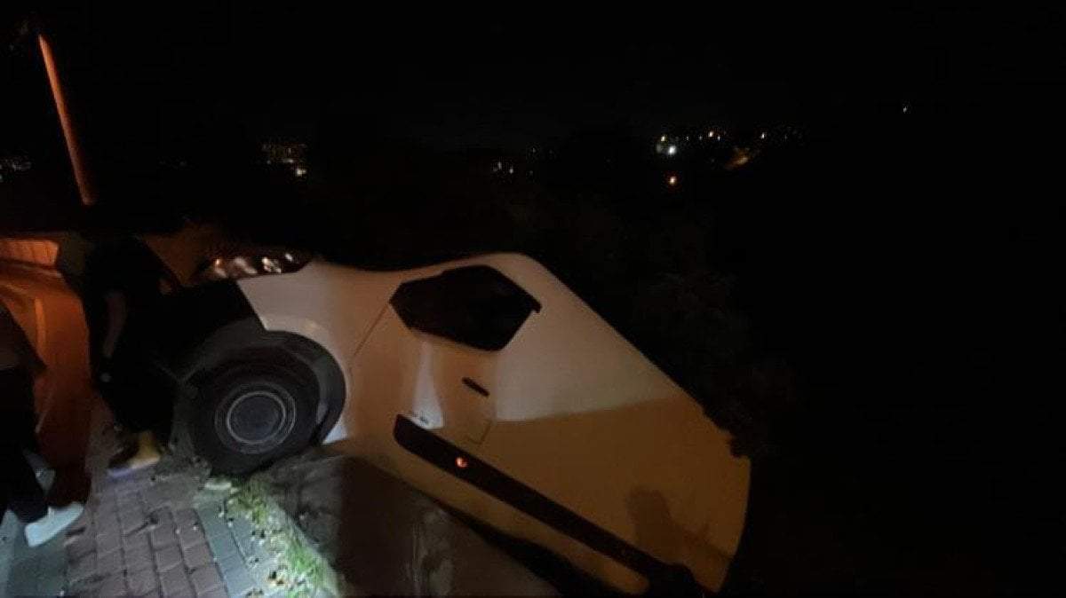 Kocaeli’de freni boşalan panelvan iki metrelik yükseklikte asılı kaldı