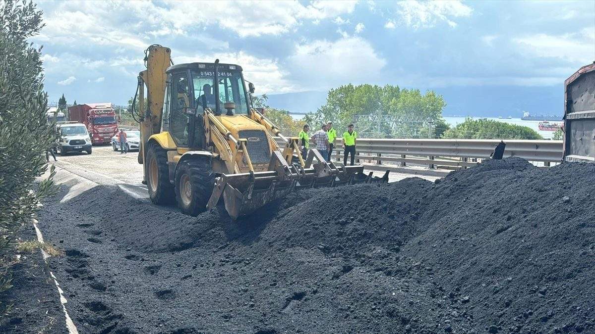 Kömürlerin yola saçılması nedeniyle yolun İstanbul istikameti ulaşıma kapandı.
