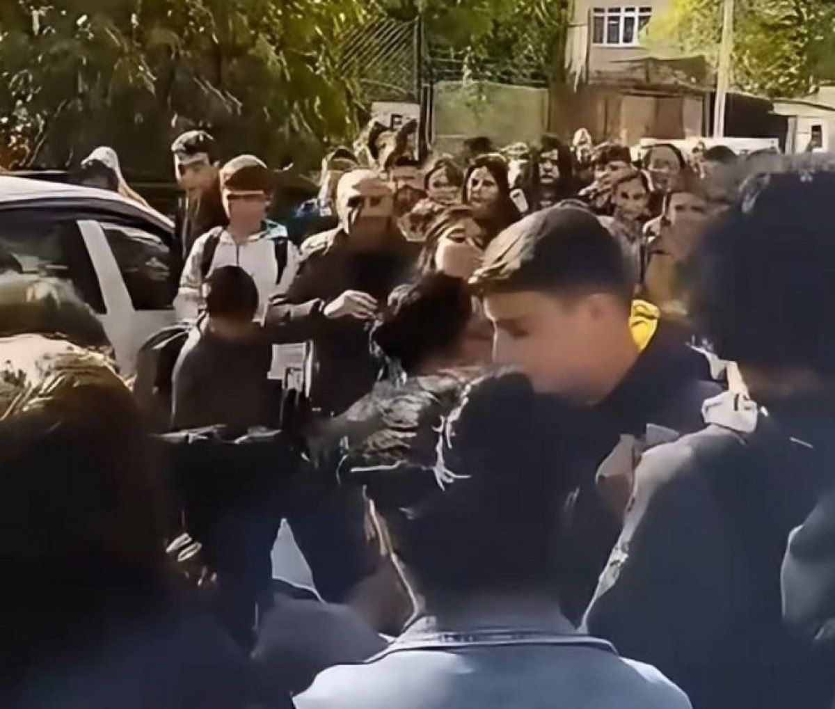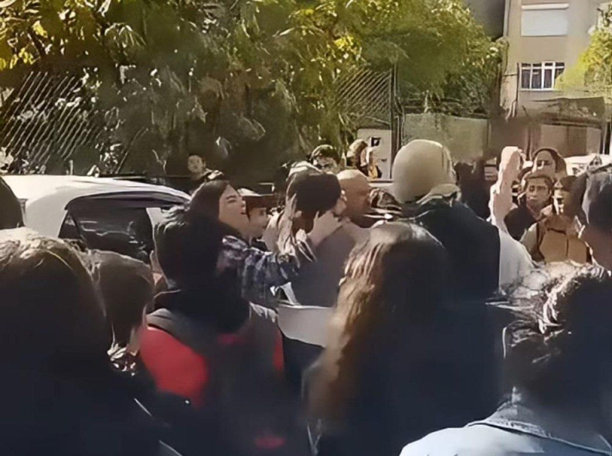 Velilerin, öğrencilerin önünde yaşadığı bu kavga, cep telefonuyla anbean kaydedildi.
