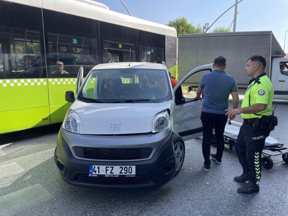İzmit’in Kandıra sapağında ilerleyen hafif ticari araç ile özel halk otobüsü çarpıştı.