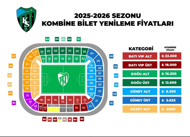 Kulübün sosyal medya hesabından yapılan açıklamada, Yıldız Entegre Kocaeli Stadı’ndaki tüm resmi iç saha karşılaşmalarını kapsayan kombine yenileme döneminin bugün başladığı belirtildi.