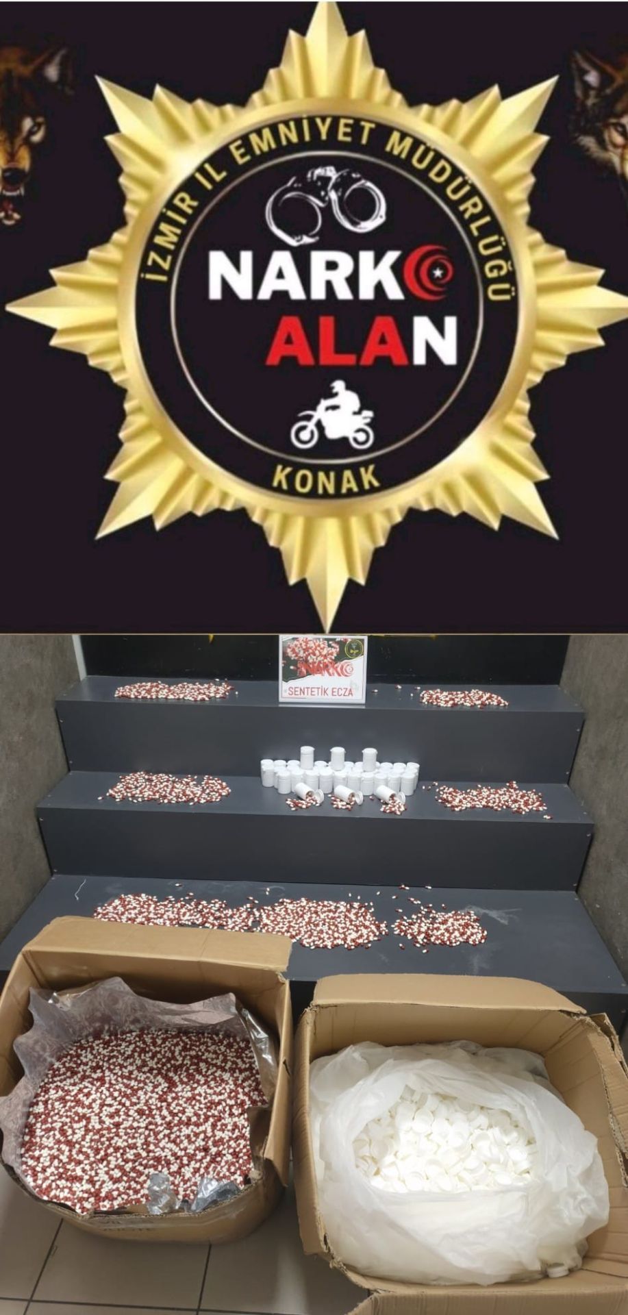 Sentetik ecza maddeleri Narkotik Suçlarla Mücadele Şube Müdürlüğüne, teslim edilmiştir.