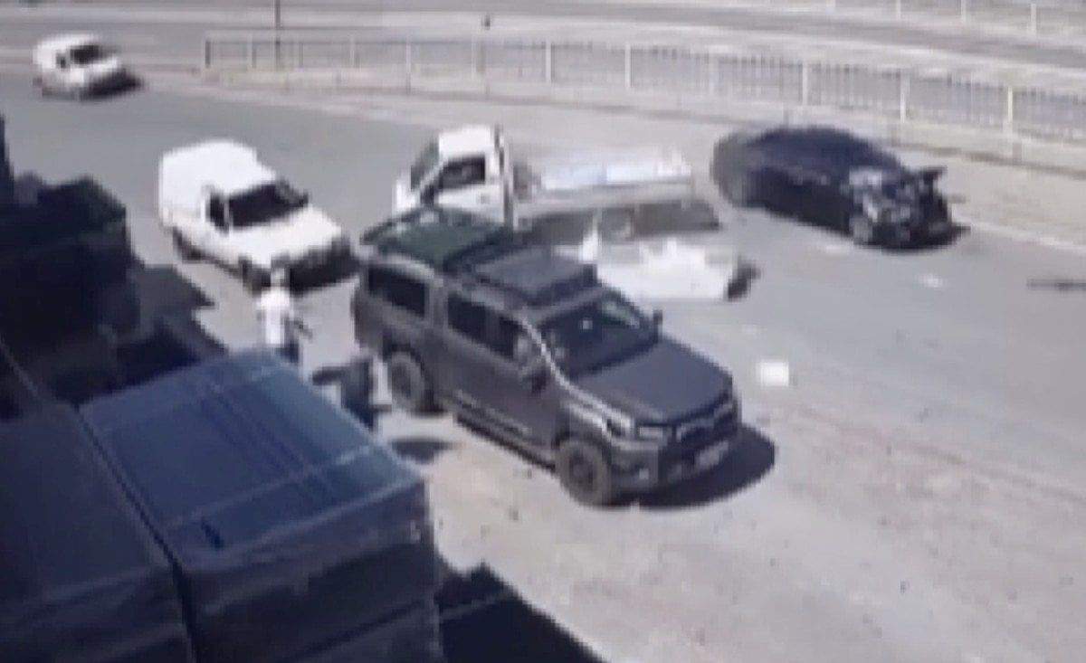 Kimsenin yara almadan atlattığı kaza anı güvenlik kamerası tarafından saniye saniye görüntülendi.