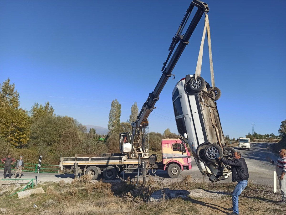 Sulama kanalındaki otomobil ise çekici yardımıyla çıkartılabildi.
