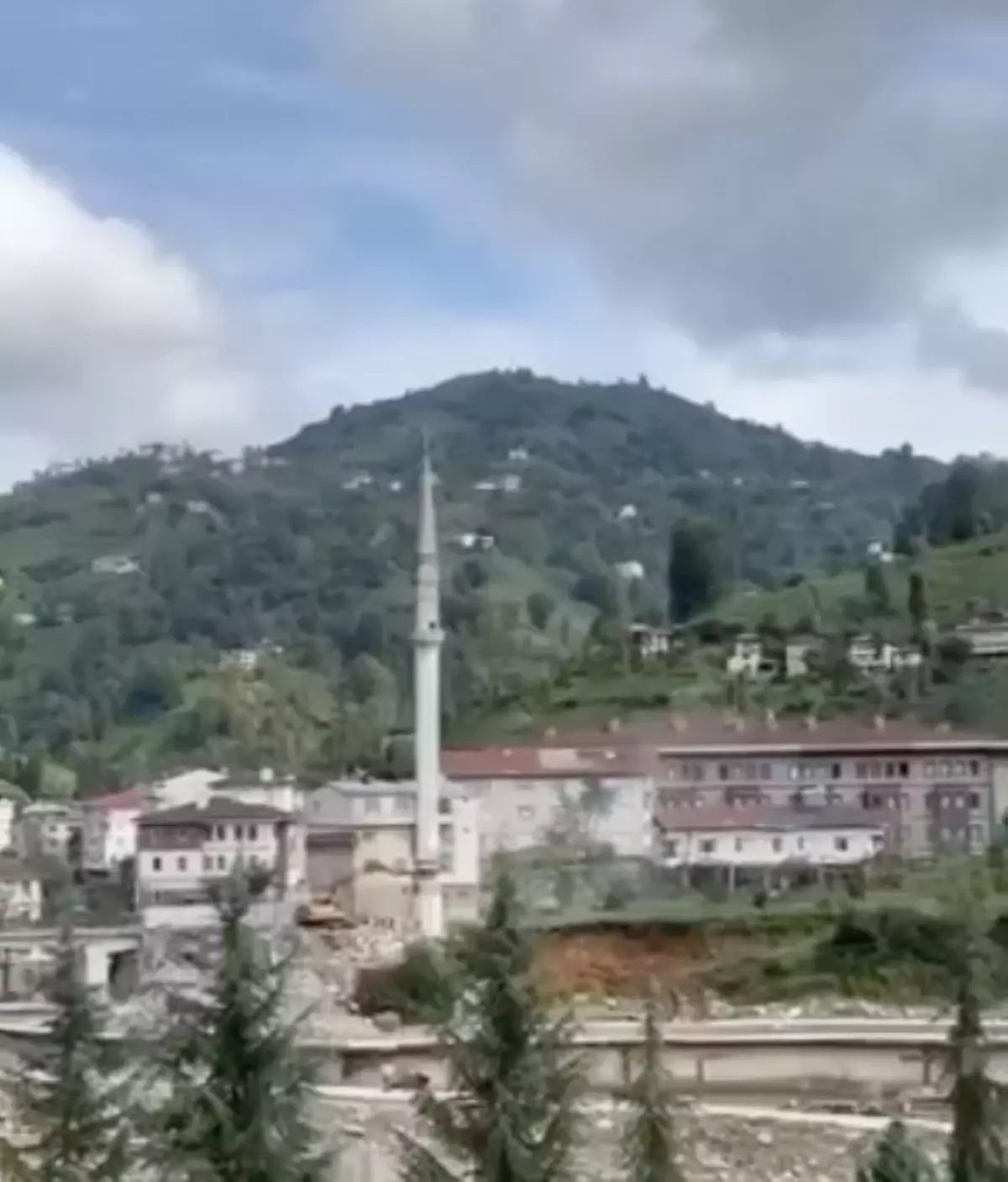 RİZE’nin Güneysu ilçesinde kentsel dönüşüm kapsamında yıkılan Köprübaşı Camisi’nden kalan minarenin kontrollü olarak yıkımı tamamlandı. Toz bulutuna neden olan yıkım, çevredekiler tarafından cep telefonu kamerası ile kaydedildi.