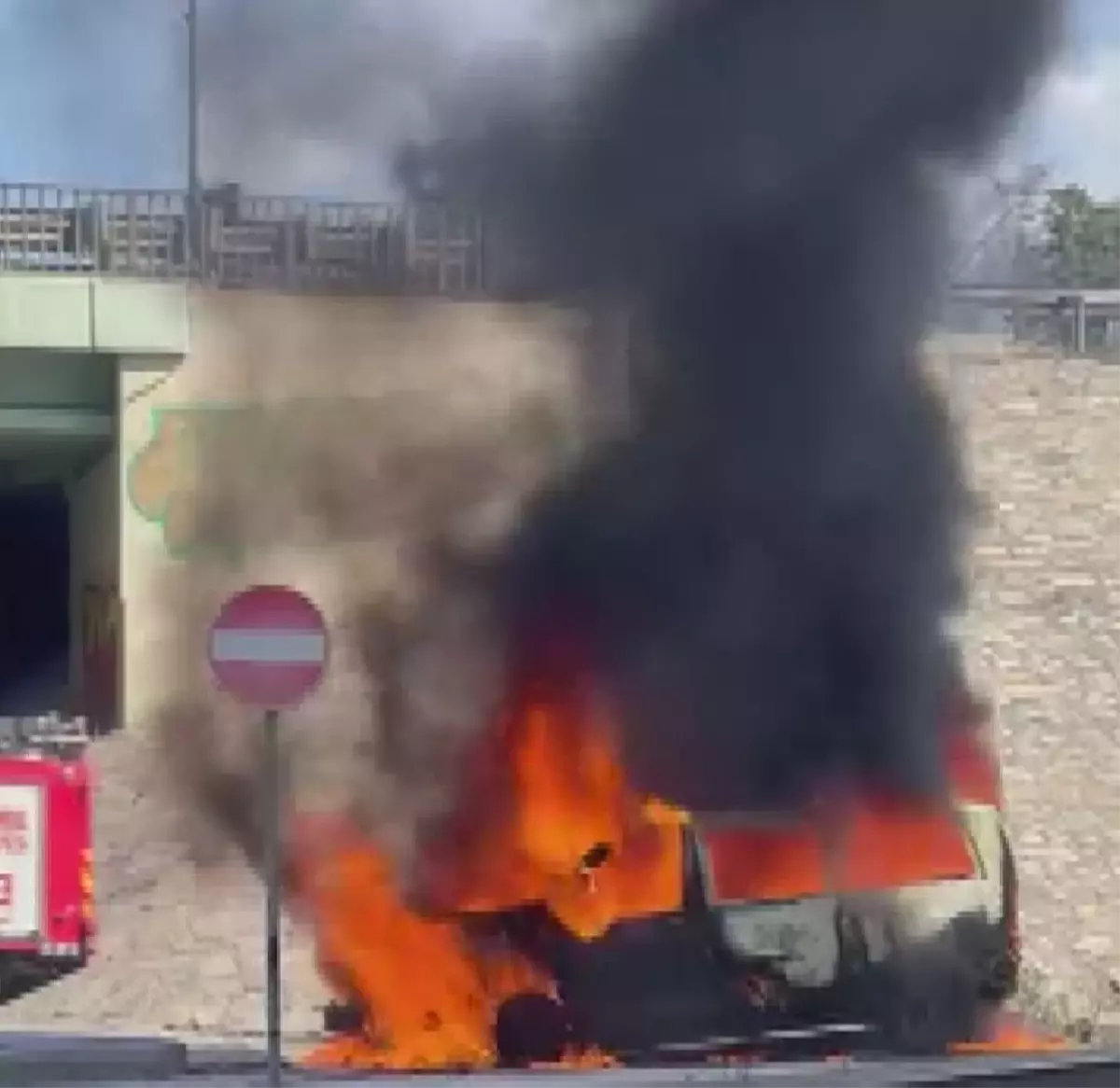 Üsküdar Koşuyolu D-100 katılımında seyir halindeki bir minibüste henüz bilinmeyen bir nedenle yangın çıktı. Araç kısa sürede alev alev yanmaya başladı. Olay yerine sevk edilen itfaiye ekiplerinin yangına müdahalesi sürüyor.