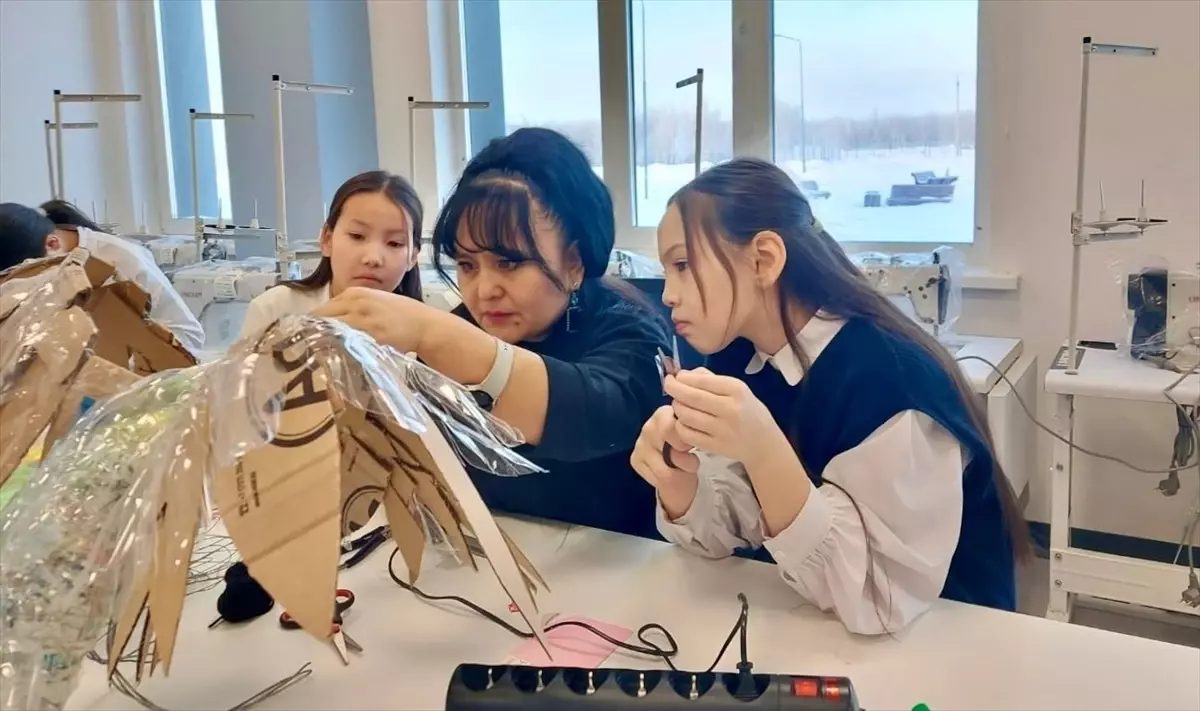 Kazakistan’ın Akmola eyaletine bağlı Koyandı köyünde öğretmen Bahşagül Baydolda, öğrencileriyle şişe, kutu, kağıt ve tekstil atıklarından çeşitli sanat eserleri yaratıyor.