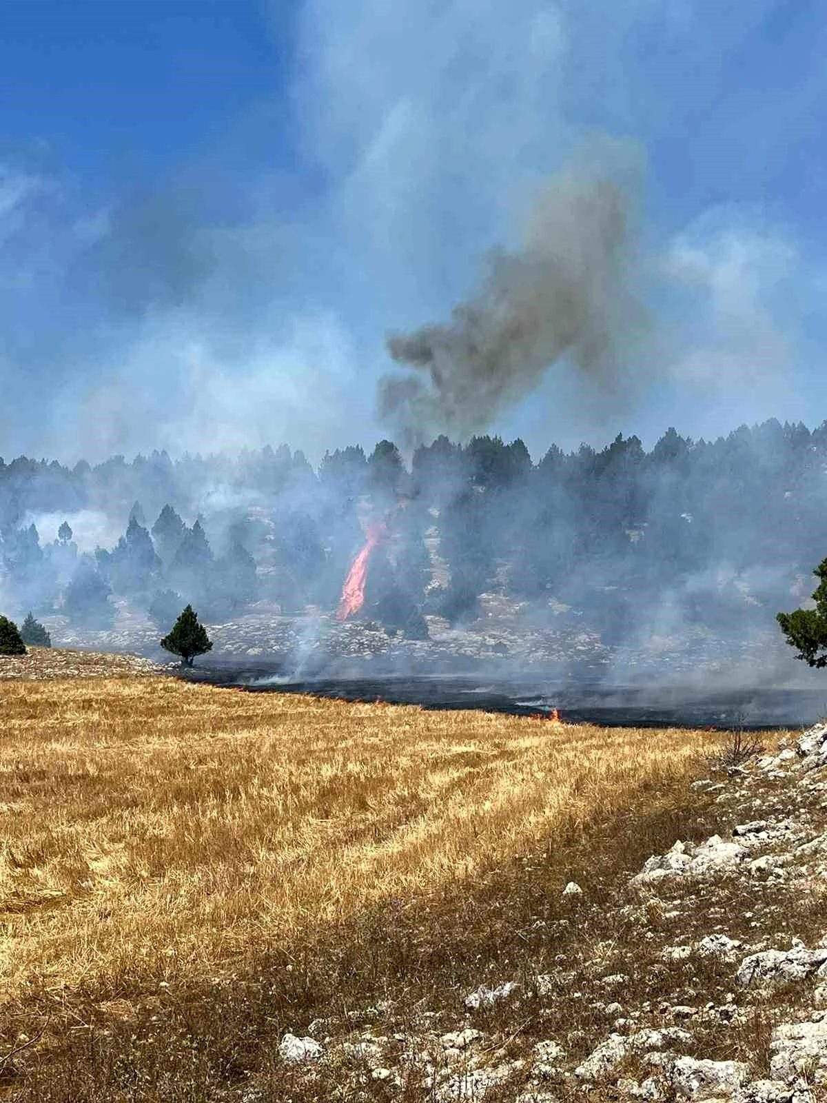 Adana’nın Kozan ilçesinde öğle saatlerinde Göller Yaylası Zincirli Kuyu mevkiinde anız yangını çıktı. Çıkan yangın büyüyerek ormana sıçradı. Bölgeye sevk edilen Kozan, Feke, Saimbeyli Orman İşletme Müdürlüğüne bağlı arazözler ve ekipler yangına müdahale ediyor. – ADANA