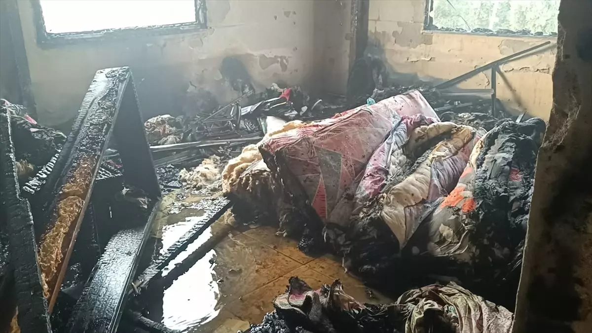 Yangın nedeniyle evde hasar oluştu.