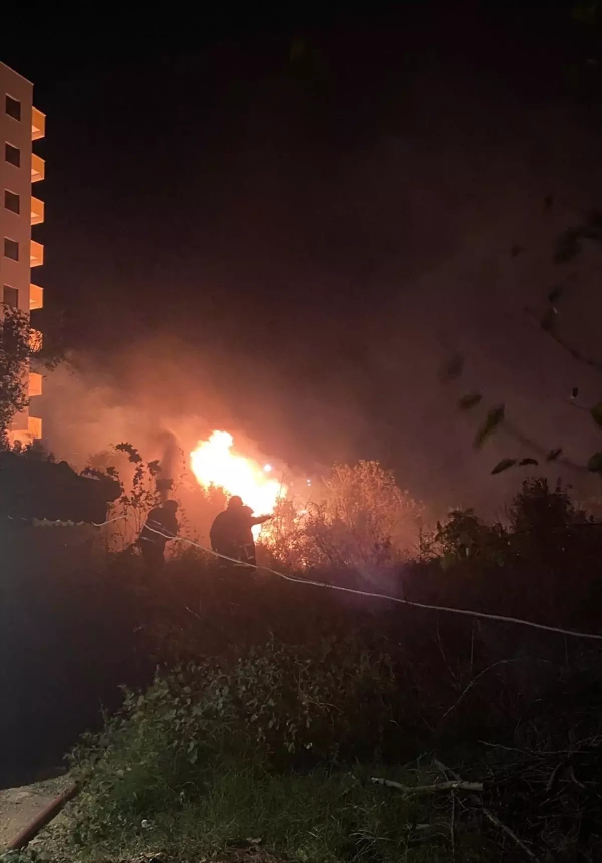 Şevkiye Mahallesi’nde bulunan narenciye bahçesinde bilinmeyen nedenle yangın çıktı.