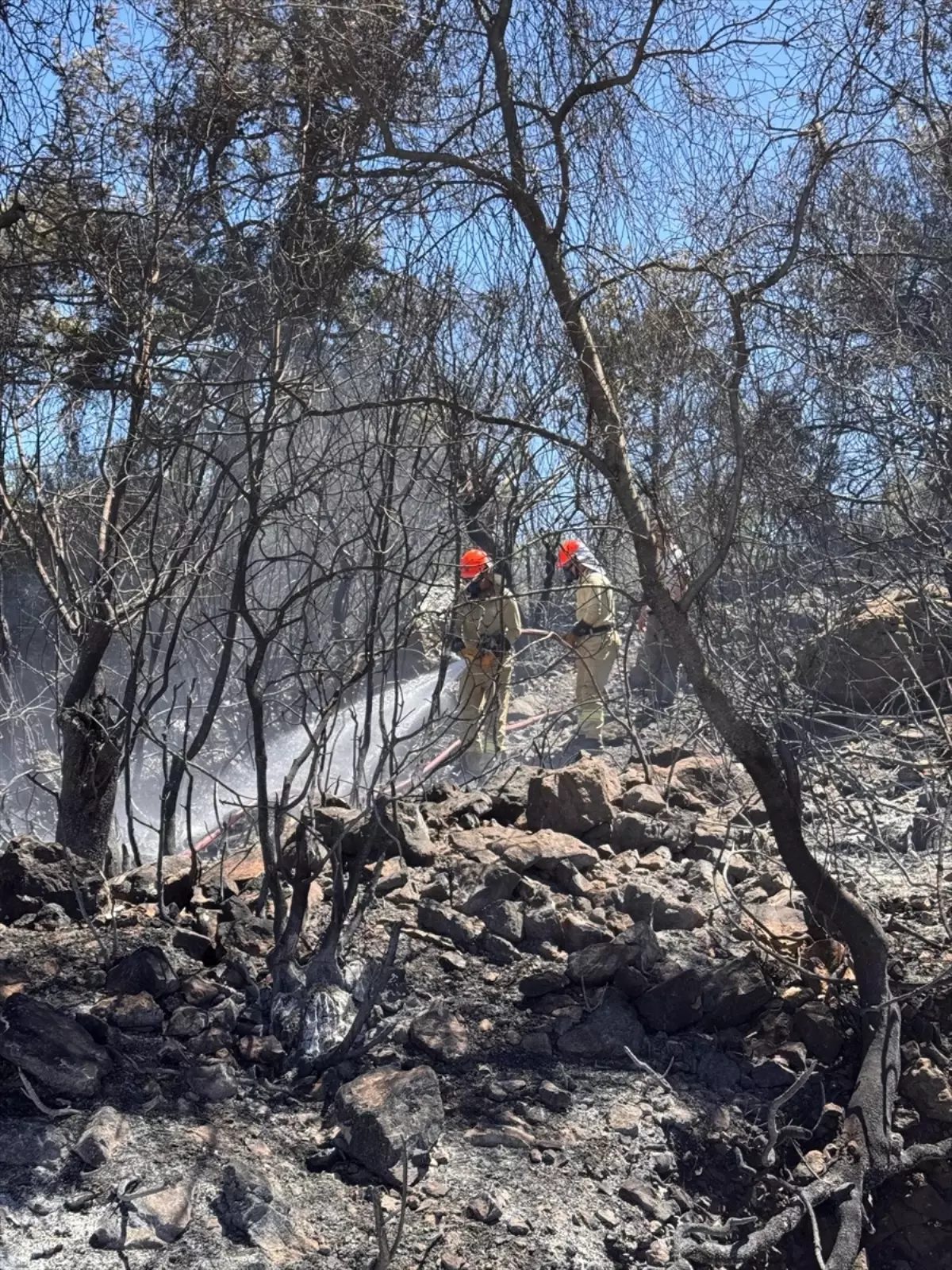 İhbar üzerine bölgeye Orman Bölge Müdürlüğü ekipleri, söndürme helikopteri ve arazözler sevk edildi.