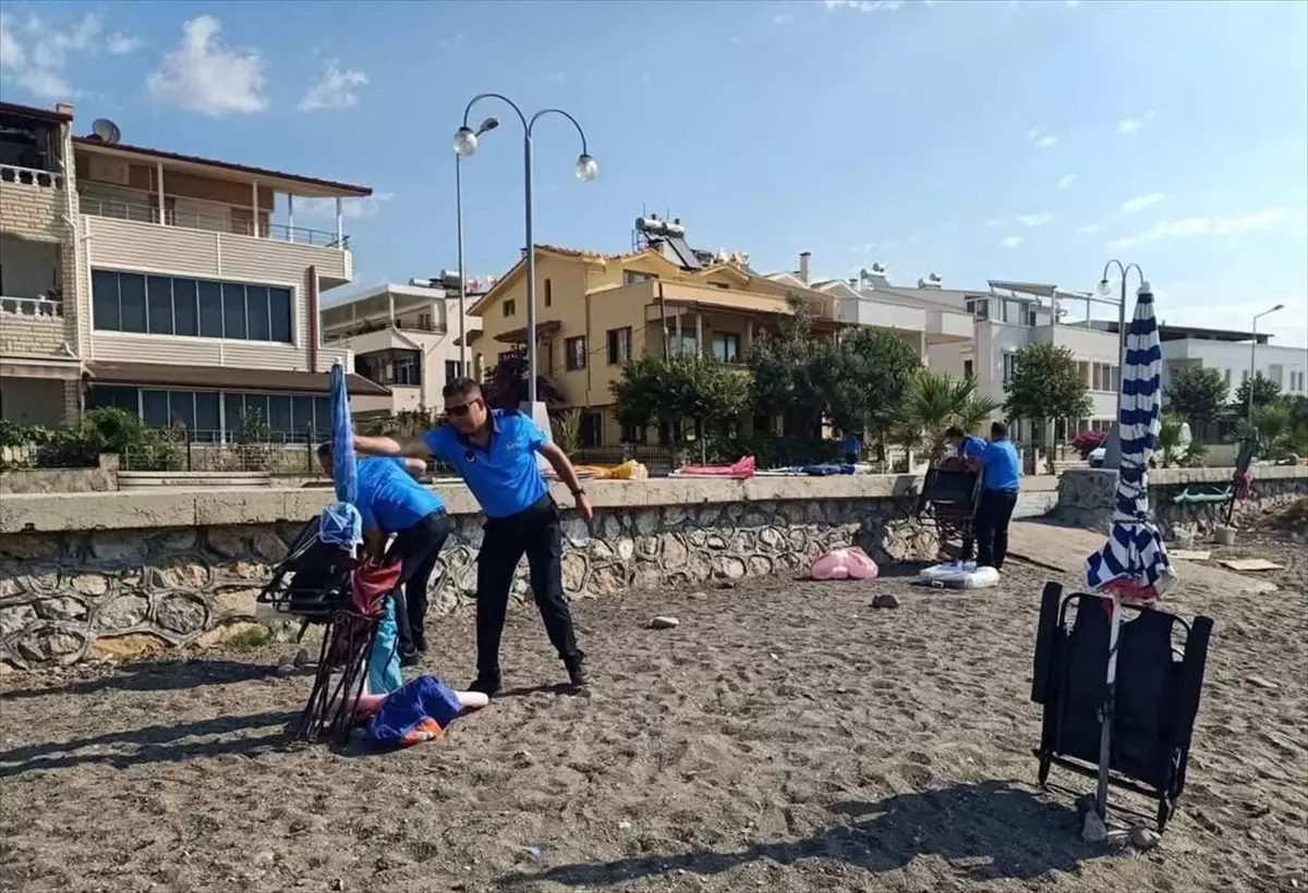 Küçükkuyu Belediyesi’nden yapılan açıklamaya göre, belediye sınırları içerisinde, kamuya ait alanlarda bazı vatandaşlar tarafından kumsala sabitlenen şemsiye ve şezlonglara yönelik zabıta ekiplerince denetim ve işlemler yapıldı.