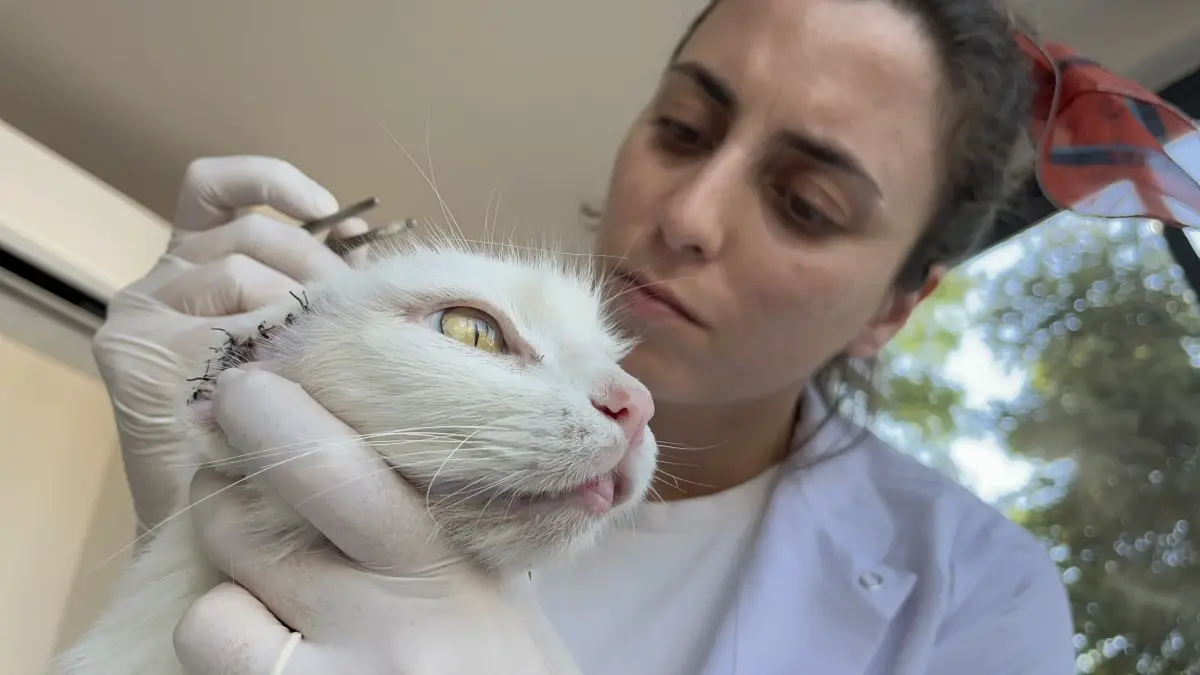 Sütlaç’ın kliniğe ilk gelişini anlatan Çakır, “İlk geldiğinde oldukça enfekteydi. Ağrısı vardı, insanlardan çok fazla korkuyordu ama son 2 gündür ağrıları ve kulaklarındaki enfeksiyon azalmaya başlayınca insanlara daha yanaşmaya başladı. Şu anda beslenmesi iyi, sağlık durumu hızlıca iyiye gidiyor. İnşallah en kısa zamanda dikişlerinden de kurtulabilirsek hızlıca sağlığına kavuşacaktır ama kulaklarının kesilmesinden dolayı artık duymuyor” ifadelerini kullandı.