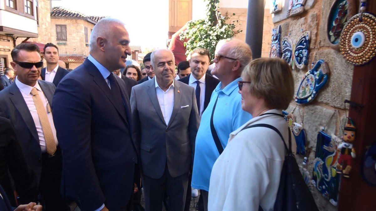 Side Antik Kenti’nde esnaf ve turistlerle görüşen Bakan Ersoy, turistlere Türkiye’ye ve Side’ye kaç defa geldiklerini ve memnun olup olmadıklarını sordu.