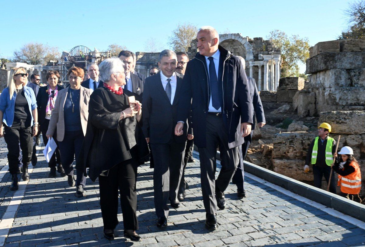 Kültür ve Turizm Bakanı Mehmet Nuri Ersoy, Antalya’nın Manavgat ilçesindeki dünyaca ünlü turizm merkezi Side Antik Kenti’nde bakanlık tarafından gerçekleştirilen ‘Geleceğe Miras Projesi’nin 1’inci yılı değerlendirme toplantısına katıldı.
