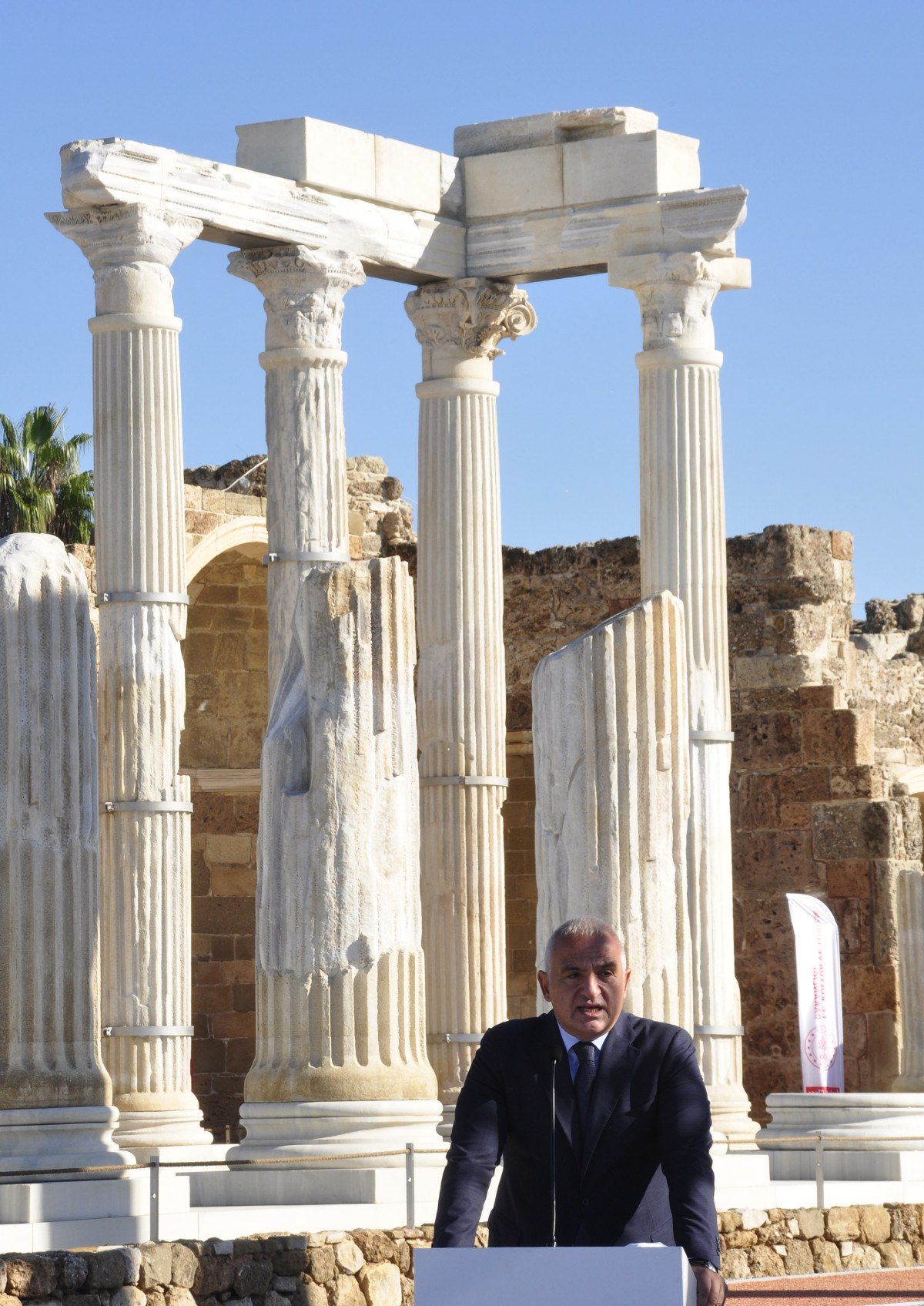 Apollon ve yeni ayağa kaldırılan Athena Tapınağı’nın önünde yapılan toplantıya Antalya Valisi Hulusi Şahin, AK Parti Antalya milletvekilleri Kemal Çelik, Tuba Vural Çokal, İbrahim Ethem Taş, AK Parti İl Başkanı Ali Çetin, MHP İl Başkanı Onur Temel, Manavgat Kaymakamı Adil Karataş, Manavgat Belediye Başkanı Niyazi Nefi Kara, bakanlık yetkilileri ve çok sayıda davetli katıldı.
