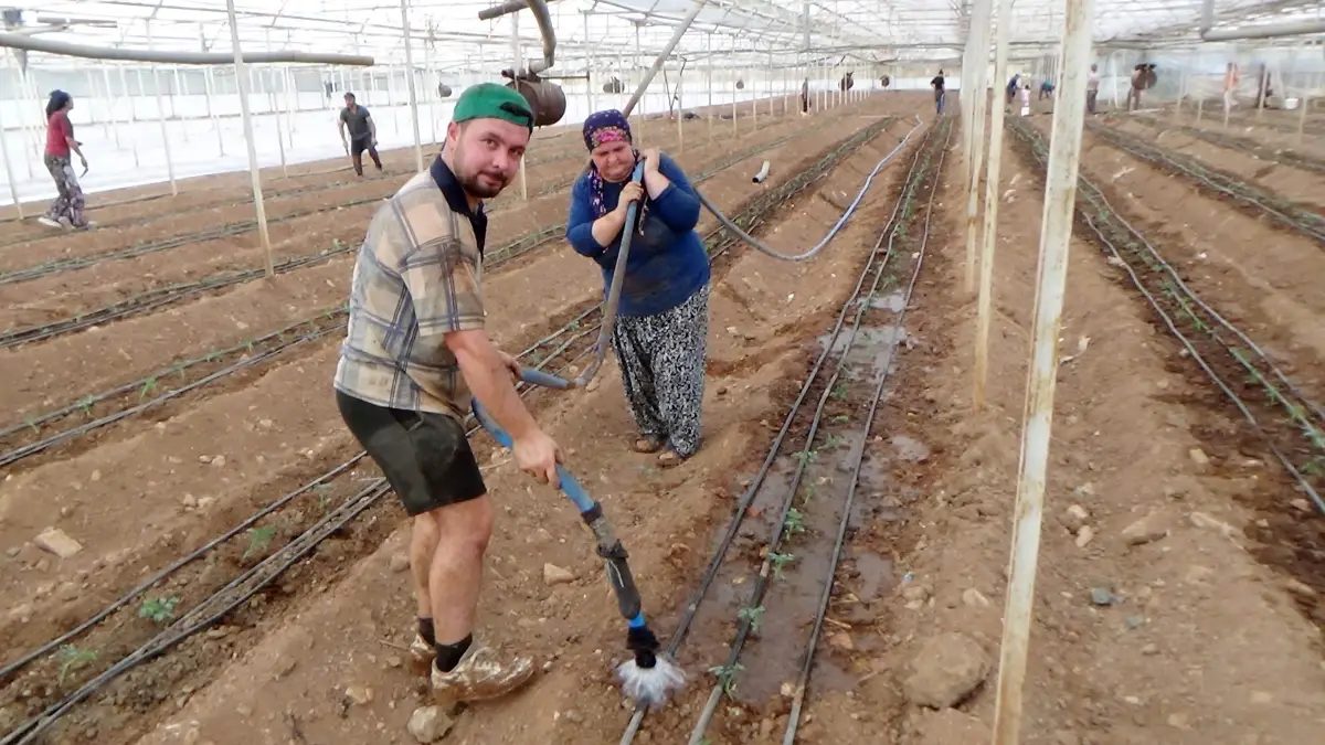 İlçede pembe domates üretimi gerçekleştiren Muhammed Hasyılmaz (25), domates fidelerinin toprağa ekilmesinin ardından, sifon hortumlarla bol suyla suladıklarını, sonraki dönemde ise damlama sulama yöntemini kullanacaklarını söyledi. Hasyılmaz, “Şu an güz dönemi dikimlerimizi yapıyoruz. Pembe domates dikiyoruz. Aşağı yukarı 60- 65 günlük bir sürede hasat ederiz. 15 Şubat gibi bu domateslerin hasadını bitiririz. Domateslerin hasadı sona erince seralara kavun ekmeyi düşünüyoruz” dedi.