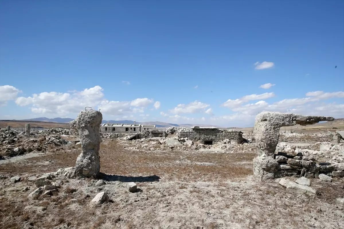 Gümüşören Barajı'ndaki su seviyesi düşerek eski yerleşim yerlerini gün yüzüne çıkardı.