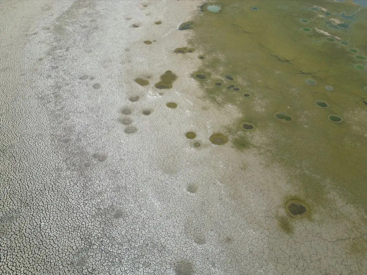 Gölette suyun çekildiği bölgelerde çatlaklar oluştu.