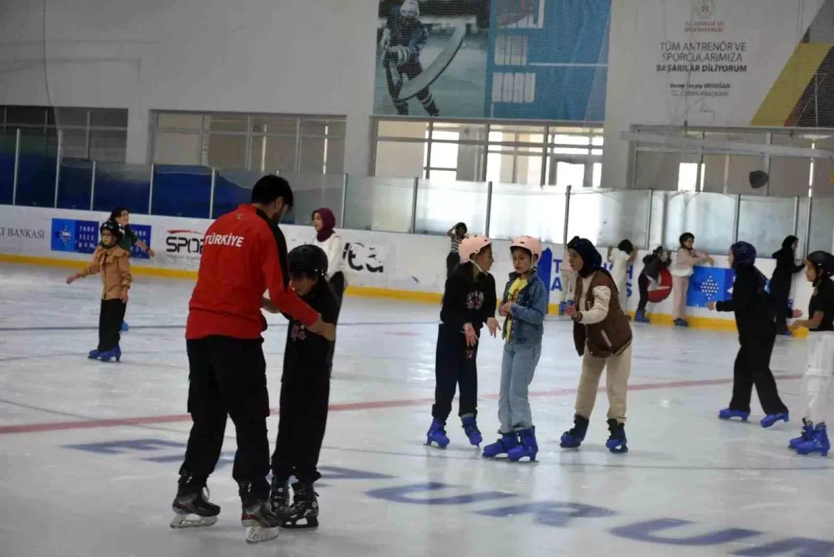 Erzurum Gençlik ve Spor İl Müdürlüğü Yaz Kur’an Kursları’nda Kur’an öğrenen öğrencileri buz pateni ile tanıştırdı.