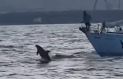 Öte yandan, denize açılan tekneler beklenmedik bir sürprizle de karşılaştı. Küresel çapta ‘umudun sembolü’ olarak bilinen yunus balıkları da eşlik etti. Yunuslar, sadece teknelere eşlik etmekle kalmadı, adeta rehberlik eder gibi hareket etti.