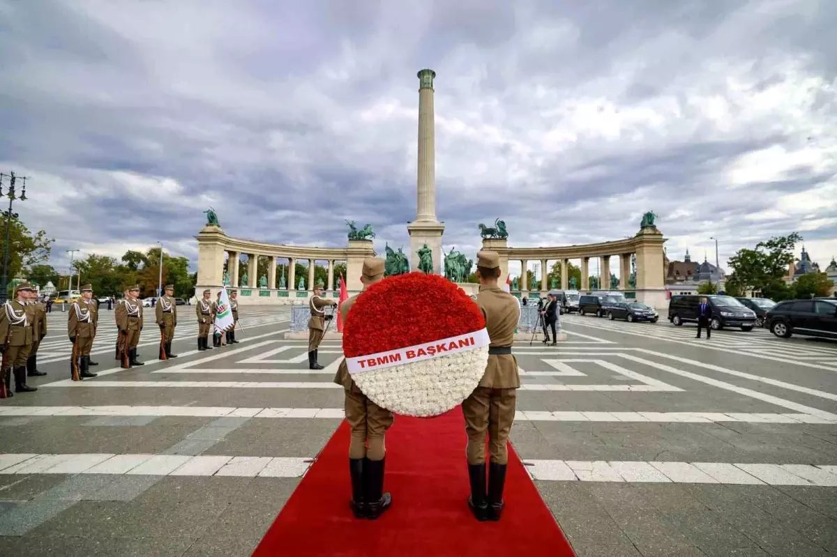 TBMM Başkanı Numan Kurtulmuş, resmi ziyaret düzenlediği Macaristan’ın başkenti Budapeşte’de temaslarını sürdürüyor. Numan Kurtulmuş temasları kapsamında, beraberindeki Türkiye-Macaristan Dostluk Grubu Başkanı AK Parti Eskişehir Milletvekili Fatih Dönmez, TBMM Katip Üyeleri AK Parti Mersin Milletvekili Havva Sibel Söylemez ve CHP Adana Milletvekili Müzeyyen Şevkin, TBMM İdare Amiri MHP Gaziantep Milletvekili Sermet Atay, Türkiye’nin Budapeşte Büyükelçisi Gülşen Karanis Ekşioğlu ile Kahramanlar Meydanı’na geldi. Macaristan-Türkiye Parlamentolar Arası Dostluk Grubu Başkanı Attila Tilki ile Macaristan’ın Ankara Büyükelçisi Viktor Matis tarafından askeri törenle karşılanan Kurtulmuş, daha sonra üzerinde “TBMM Başkanı” yazılı kırmızı beyaz karanfillerden oluşan çelengi anıta bıraktı.