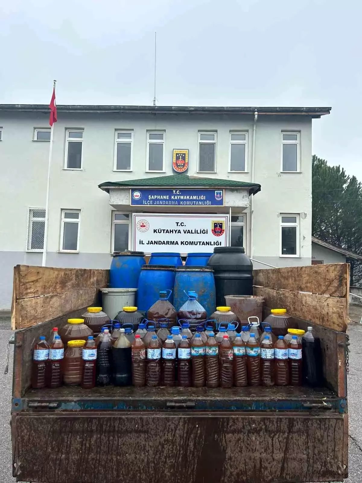 Kütahya İl Jandarma Komutanlığı ekiplerince düzenlenen operasyonda 838 litre sahte alkollü içki ele geçirildi.