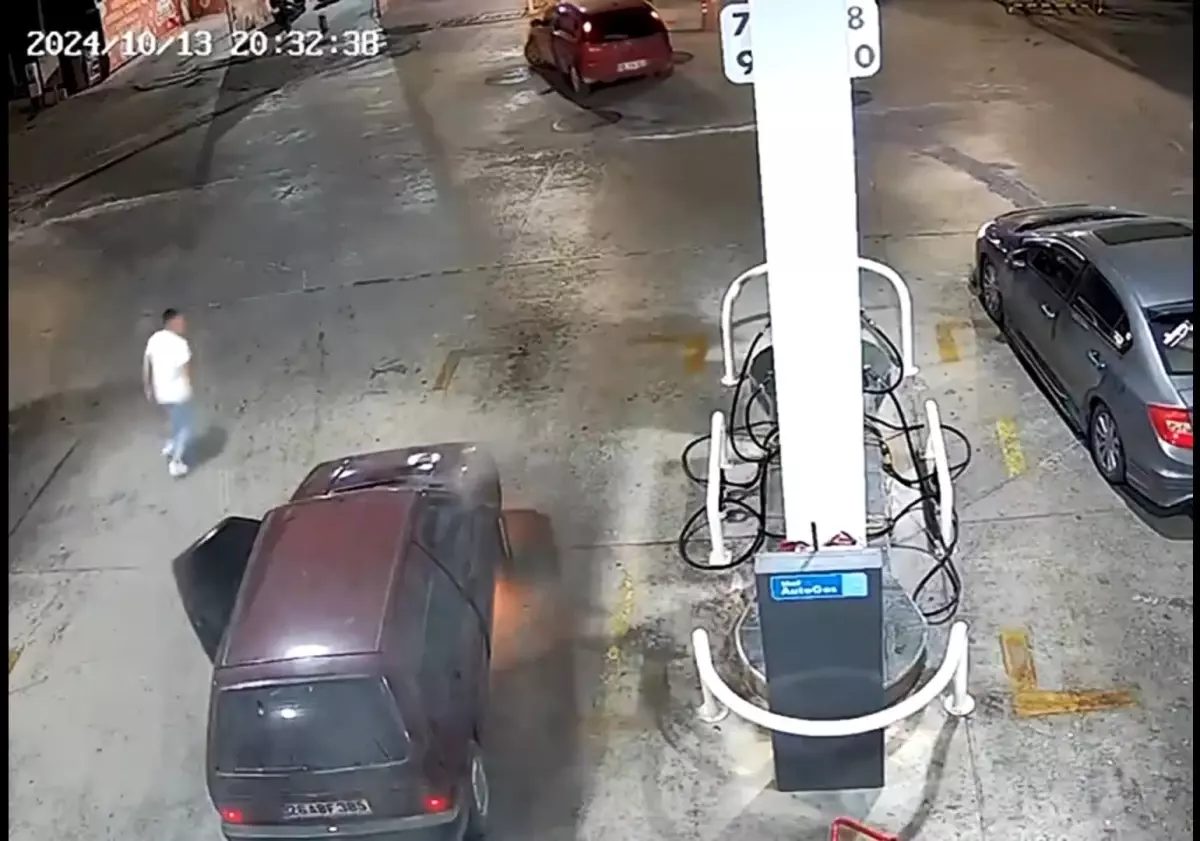 Olay, 13 Ekim günü akşam saatlerinde, Gediz ilçesine bağlı Dayınlar Mahallesi’ndeki bir akaryakıt istasyonunda meydana geldi. Yakıt almak için akaryakıt istasyonuna giren 26 ABF 385 plakalı otomobilin sürücüsü, pompaların yanına park ettiği aracından çıktı. Kısa bir süre sonra ise otomobil alev aldı. Çevredeki araç sürücüleri panikle istasyondan ayrılırken, görevliler ise alevlere yangın söndürme tüpleriyle müdahale etti. Alevler görevliler tarafından kontrol altına alınırken, o anlar ise iş yerinin güvenlik kamerasına yansıdı. Görüntülerde; park halinde olan otomobilin alev aldığı, görevlilerin ise yangın söndürme tüpleriyle alevlere müdahale ettiği, diğer araç sürücülerinin de panik halinde akaryakıt istasyonundan ayrılmaya çalıştığı anlar yer aldı.