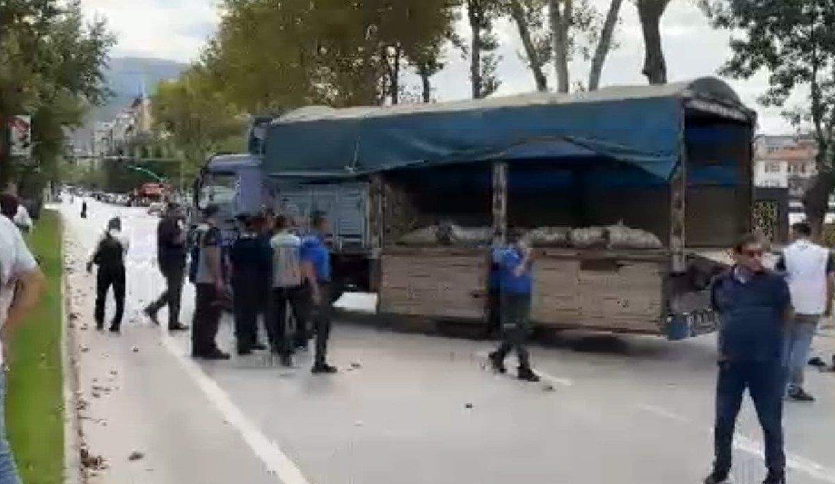 Kütahya’da kaçak satış yaptığı için ceza yazılınca kamyonuyla yol kesti