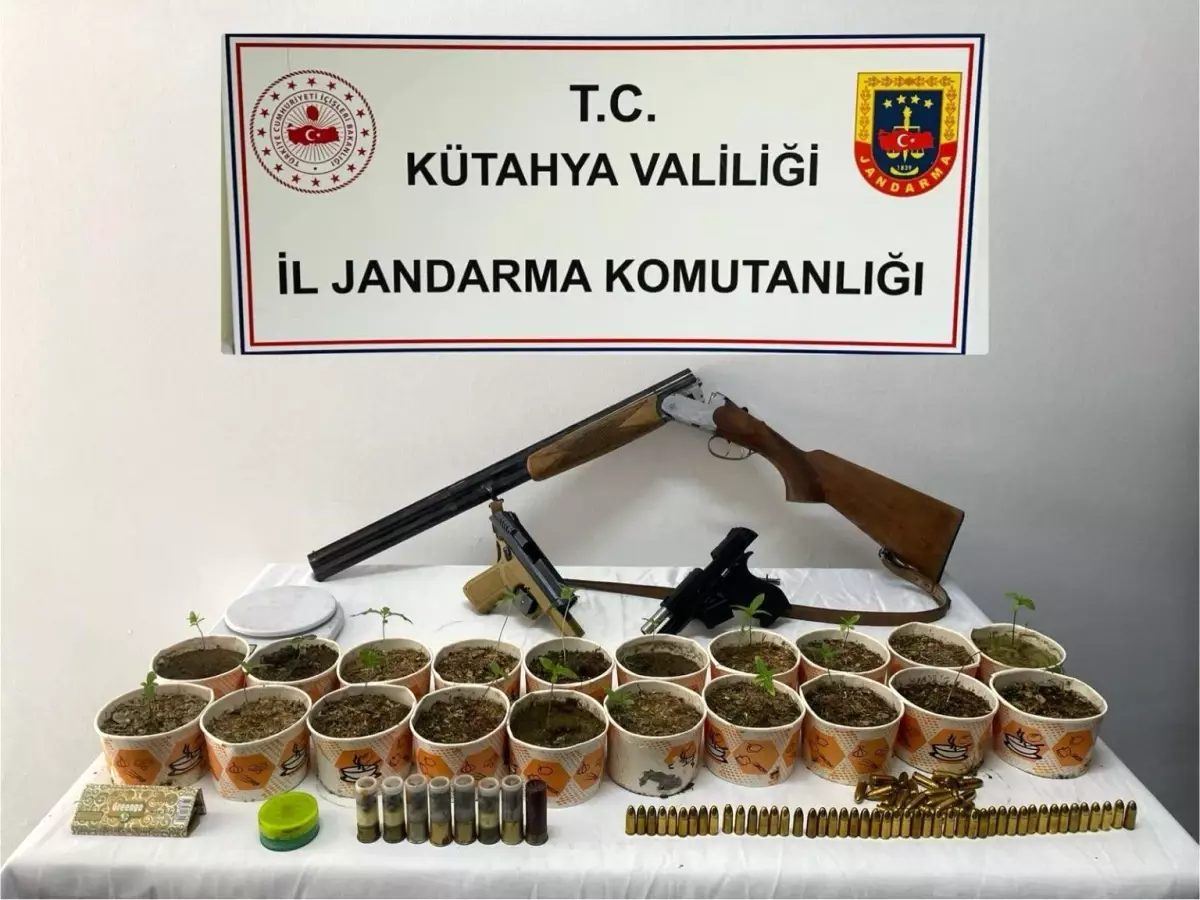Gediz İlçe Jandarma Komutanlığı sorumluluk bölgesinde gerçekleştirilen operasyonda 25 kök kenevir bitkisi, 2 tabanca ve 1 av tüfeği ele geçirildi.