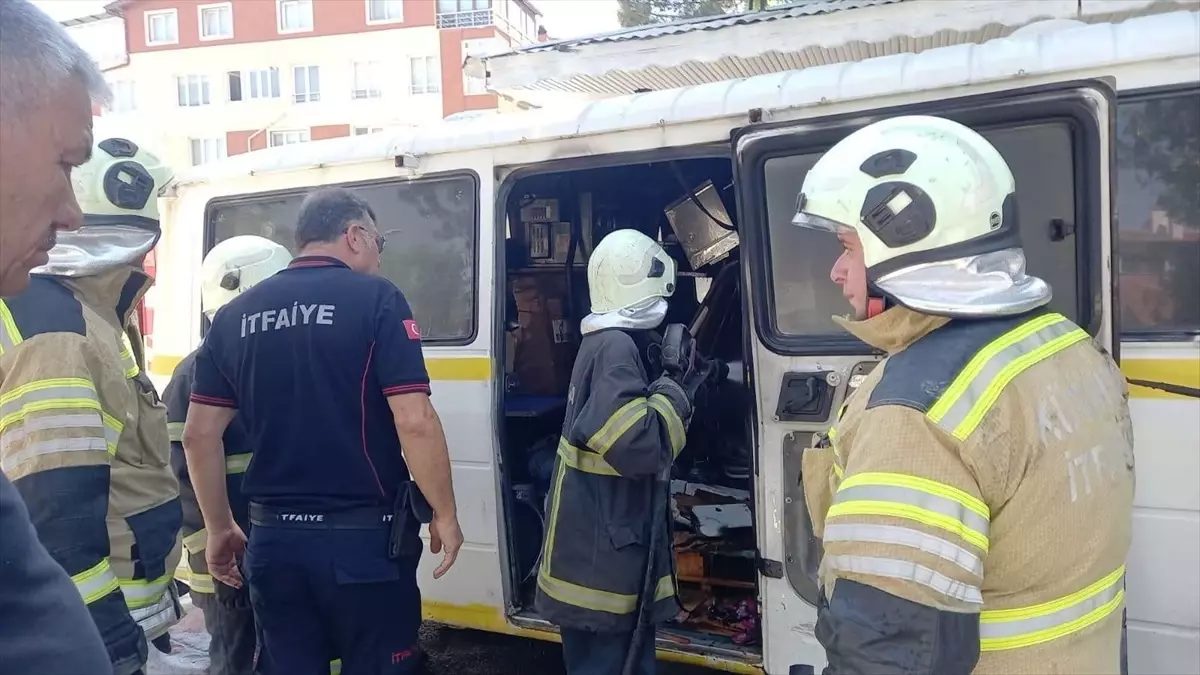 Kütahya’da çay ocağı olarak kullanılan bir minibüste çıkan yangın söndürüldü