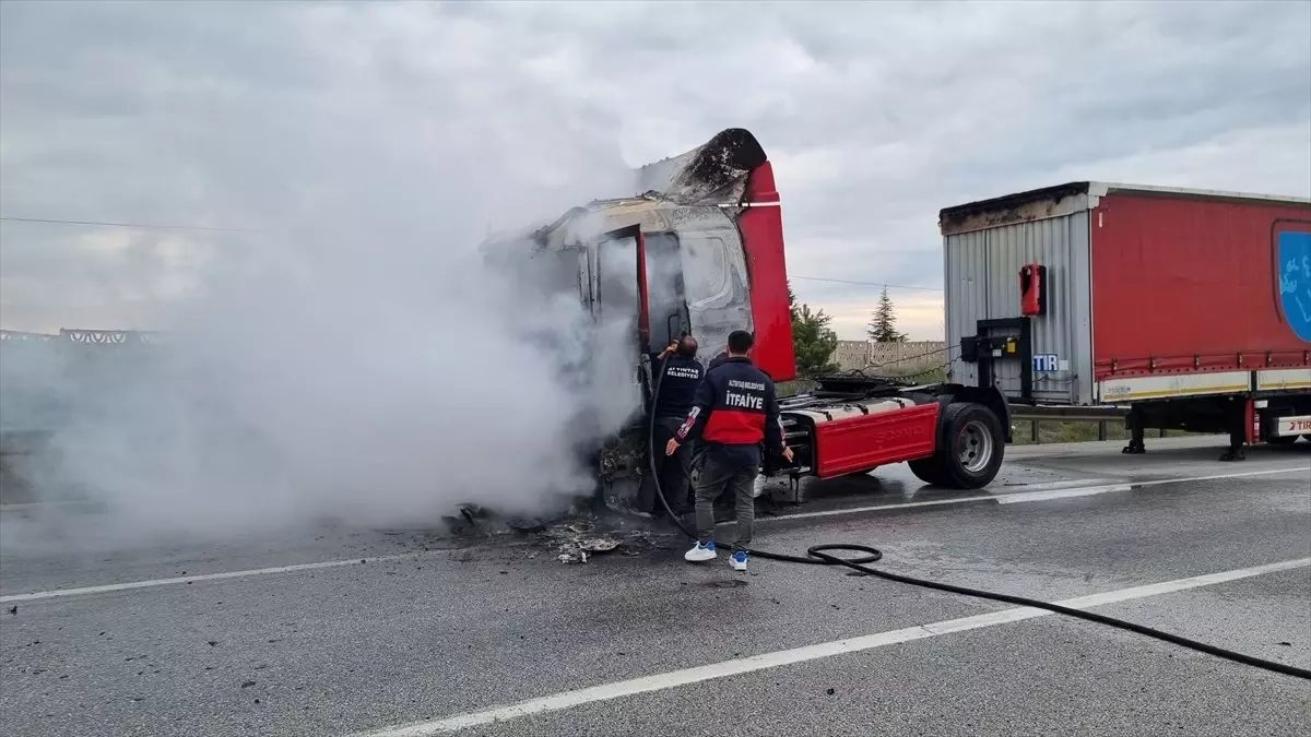 Kütahya’nın Altıntaş ilçesinde seyir halindeki tırda çıkan yangın, itfaiye ekiplerince söndürüldü.