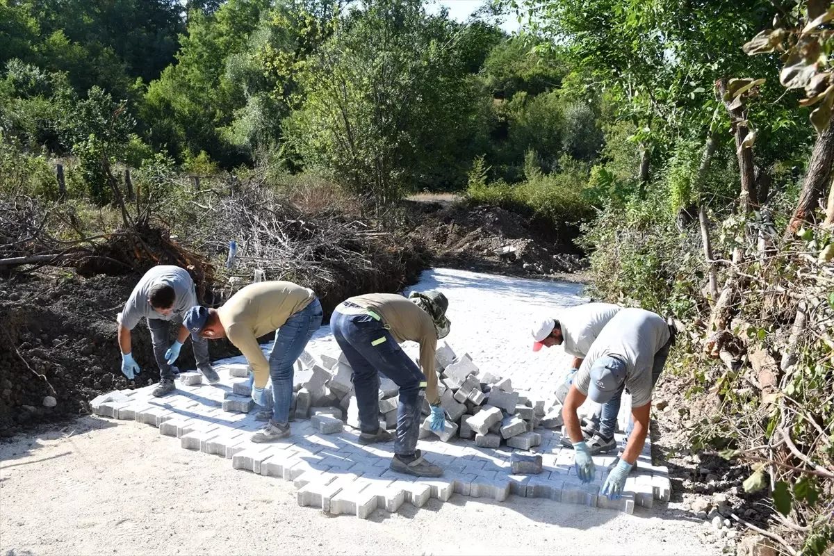 Ladik Belediyesi ekipleri, kilit parke taşı döşeme çalışmalarını hafta sonu da sürdürdü.